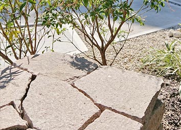 庭にはゴロタ石が配置され、自然な風合いを演出しています。