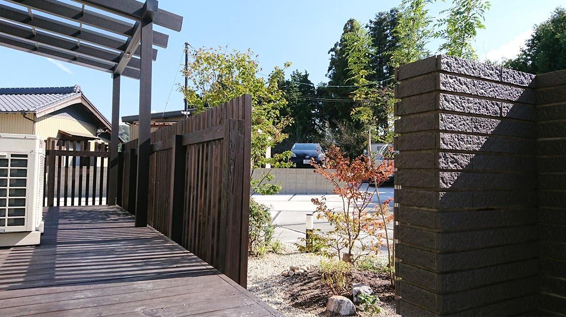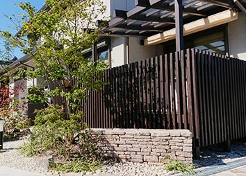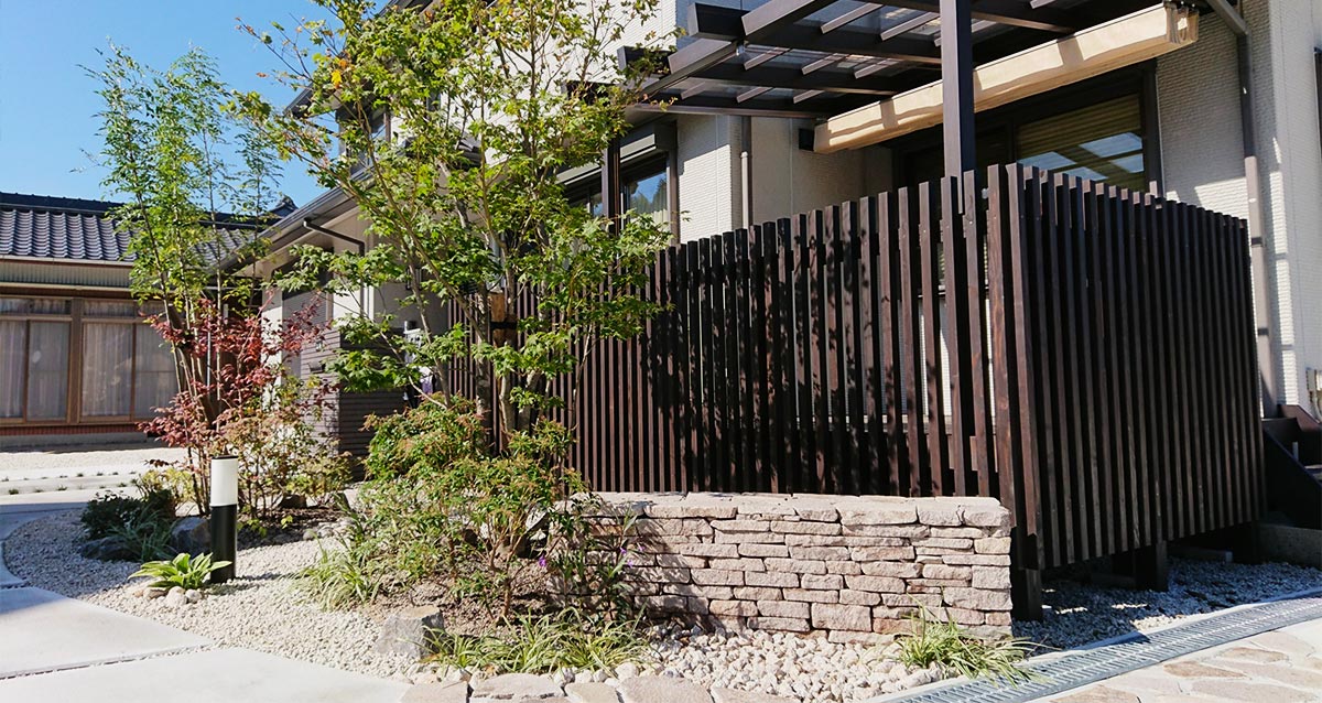 門回りには丹波の平積みが施され、重厚感と高級感を演出しています。
